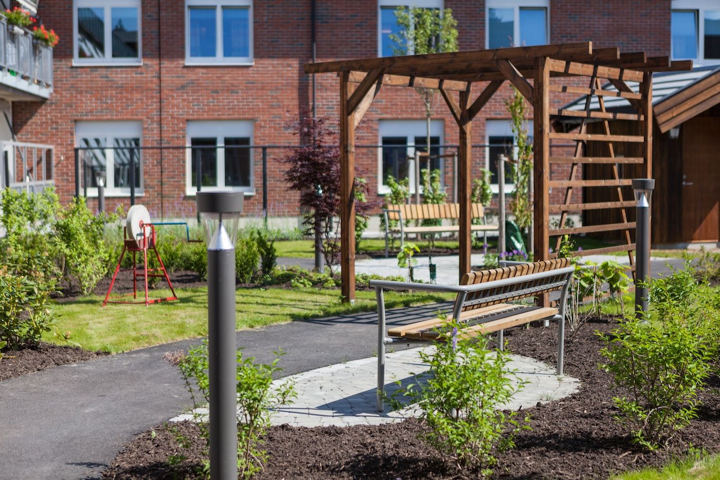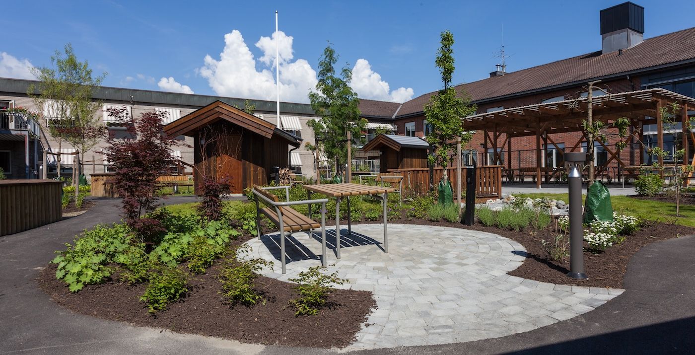 Eikertun sykehjem har en lang historie som omsorgssenter i Øvre Eiker kommune. I det siste byggetrinnet har den eksisterende sykehjemsdelen fått ny sansehage.