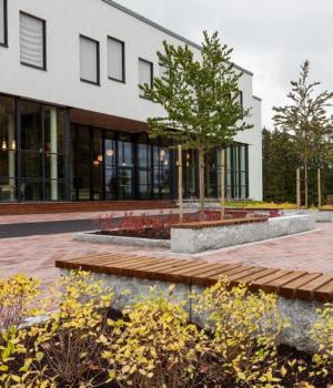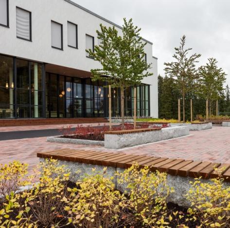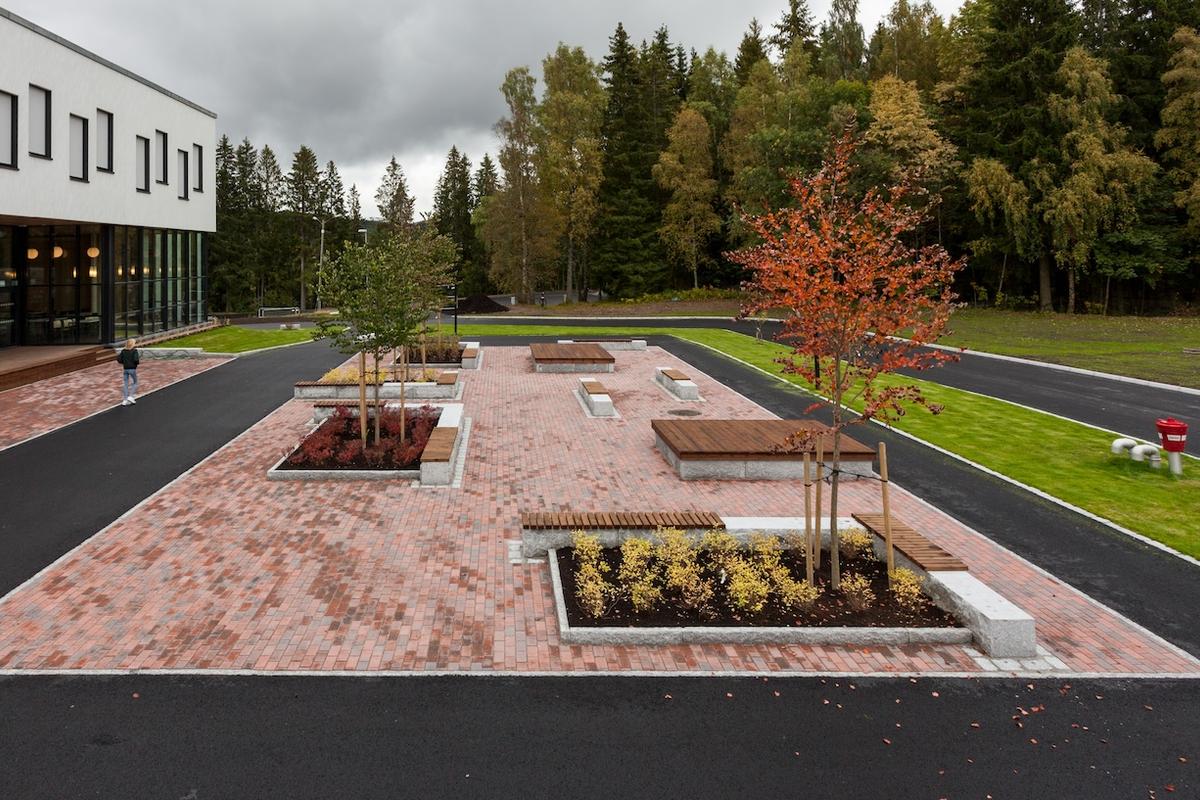 Forplassen er gitt et stramt og enkelt formuttrykk som understreker tilbyggets arkitektur samtidig som den binder sammen nytt og gammelt, og ute og inne, på en god måte. Med eksponering mot sør og rikelig med sittemuligheter har plassen blitt et attraktivt sted for uteopphold. Etter ferdigstilling av nybygget fikk skolenflere elevplasser, i tillegg til et auditorium, kantine, formidlingsrom og nye utearealer.