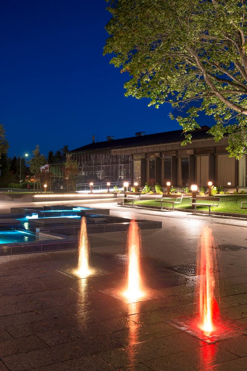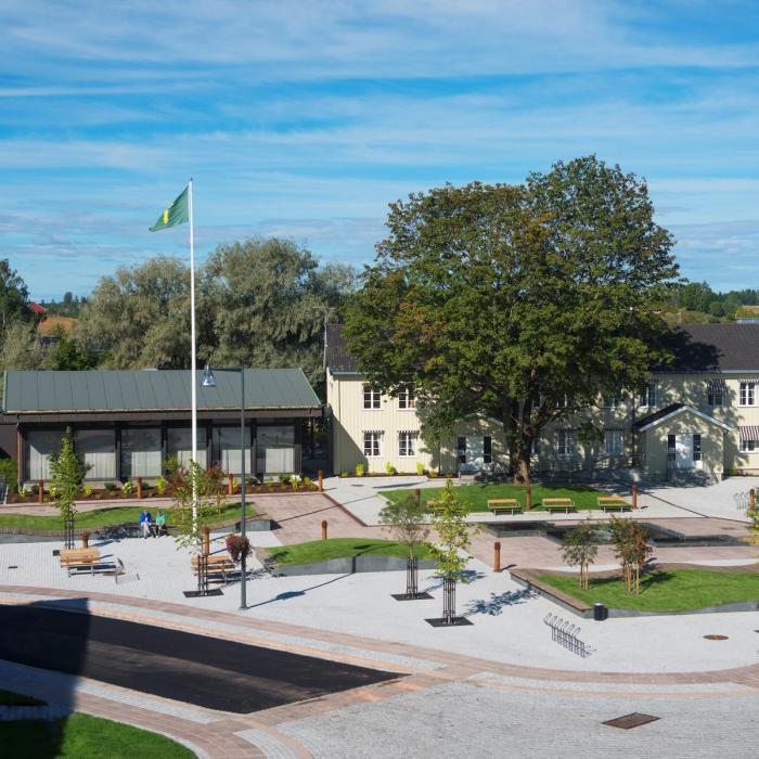 Det sentrale plassrommet mellom Rådhuset, biblioteket og Skolegata er formet for flerfunksjonelt bruk; for folkefest, konserter, torghandel eller bare for å sitte og slappe av i sola med matpakka. I den nordre delen er det et amfi og plass for tilrigging av scene og kinolerret. Terrenget er arrondert slik at deler av plassen kan islegges for skøytebane. På parkeringsplassen sør for hovedinngangen er det lagt til rette for ballspill etter kontortid.