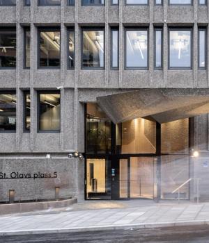 St. Olavs plass 5 er tegnet av arkitekt Erling Viksjø og er oppført på Byantikvarens liste over bevaringsverdige bygninger. Bygget har blitt modernisert med en ekstra kontoretasje og mer utadrettet virksomhet. Hovedinngangen er bygget om og har blitt mer synlig og attraktiv i gatebildet med trappeamfi med lyssatte sitteflater og plantefelt. Triangelformen i grunnplanet er gjentatt i et spesialutformet signaturbelegg som er satt sammen av to typer Ottaskifer og en rød polert granitt.