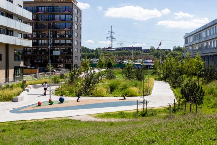 Prosjektet er en del av en sammenhengende, bilfri struktur med parker, torg, gatetun og gårdsrom. Parken skal romme aktiviteter og oppholdsplasser for alle, både beboere og allmennheten.